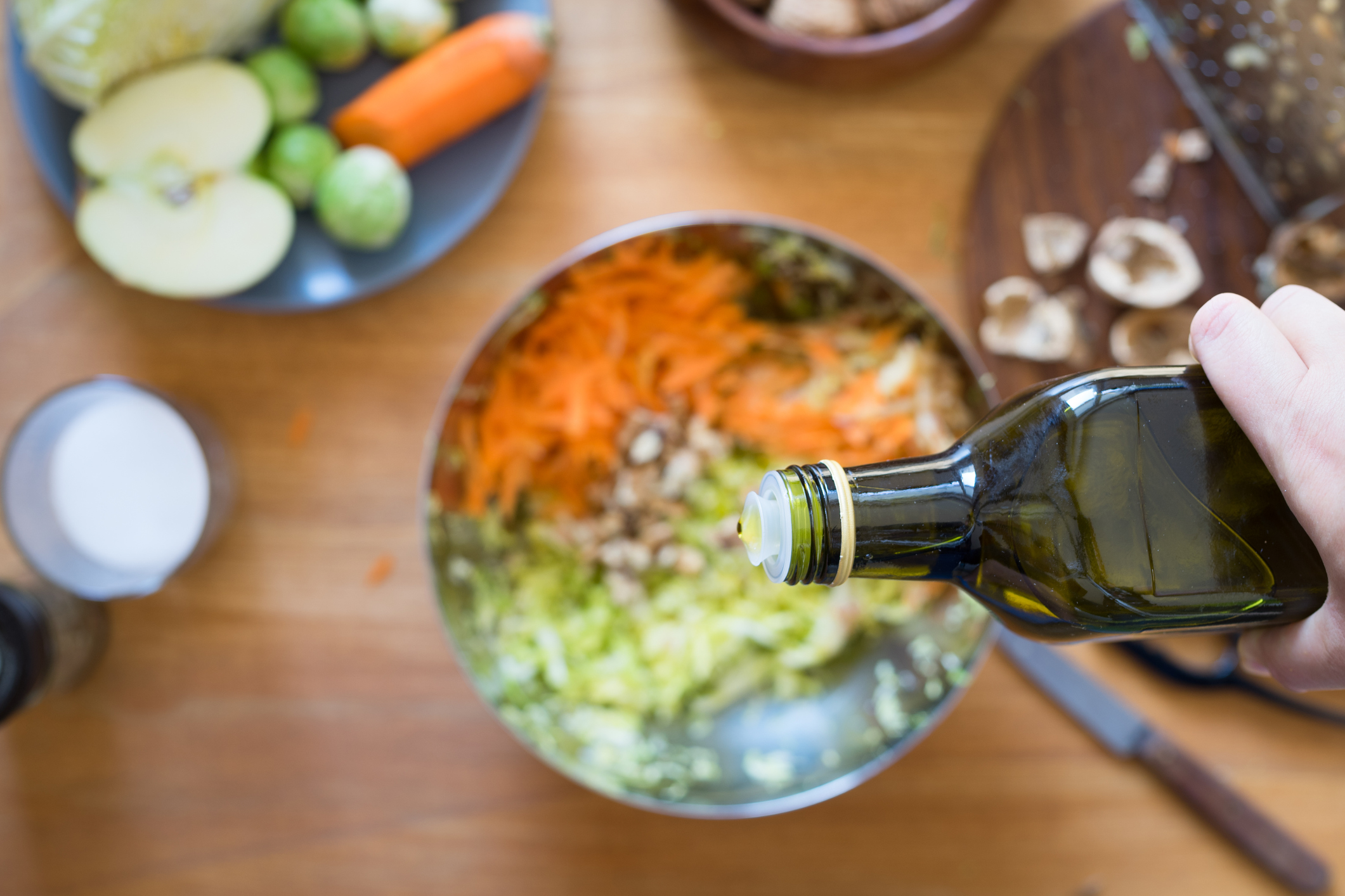 7. Finely chop apple, add to bowl.