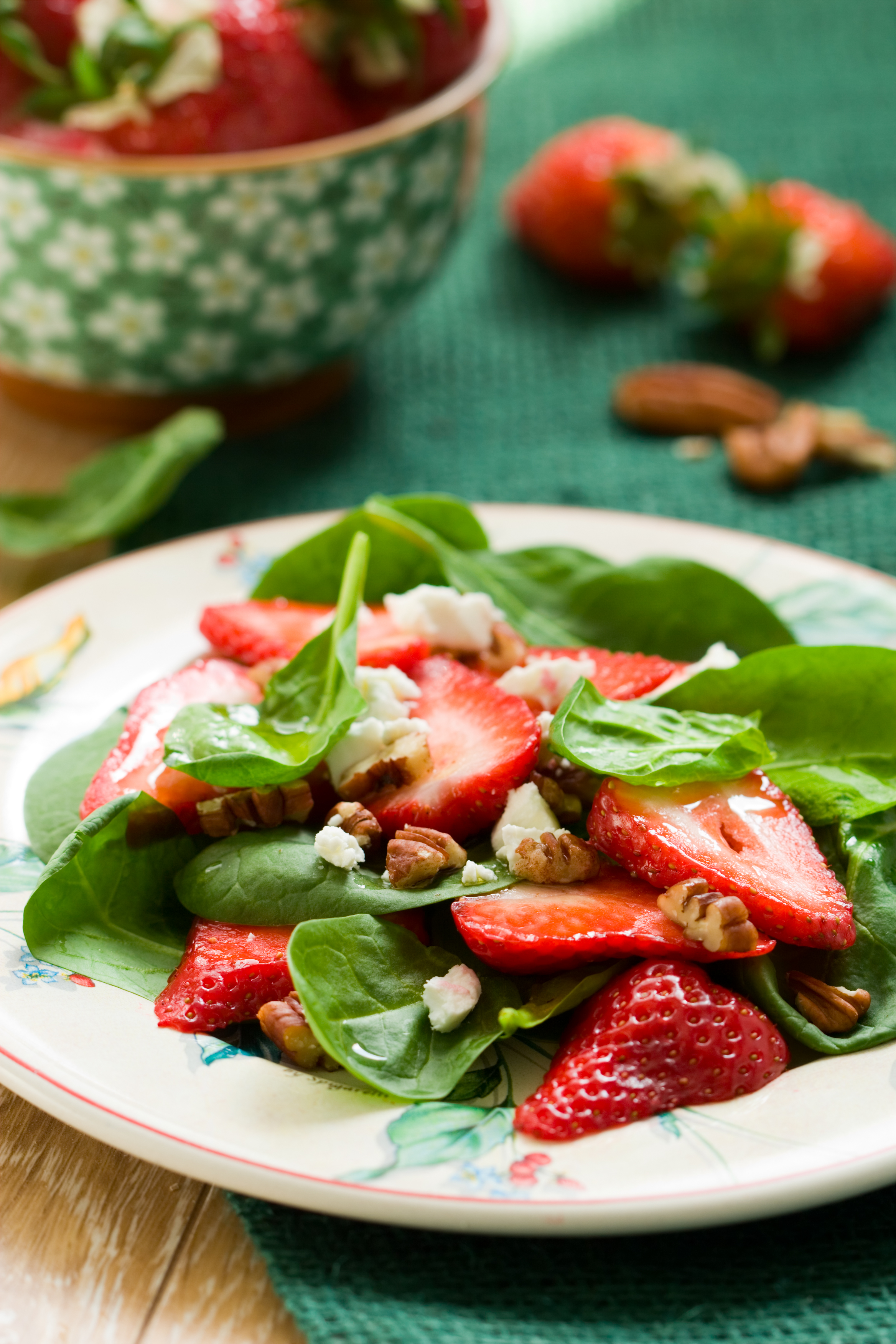Add greens, strawberries, hemp seeds and pecans to large bowl, set aside.