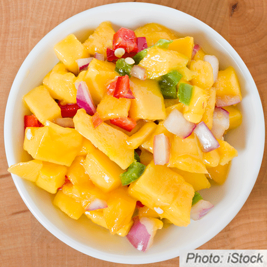 A refreshing blend of sweet and tangy, this mango and tomatillo salsa adds a zesty kick to any dish.